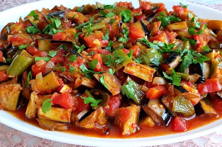 - Pişen şakşukayı servis tabağına alın. Üzerine doğranmış maydanoz veya taze nane yapraklarıyla süsleyerek servis yapın.